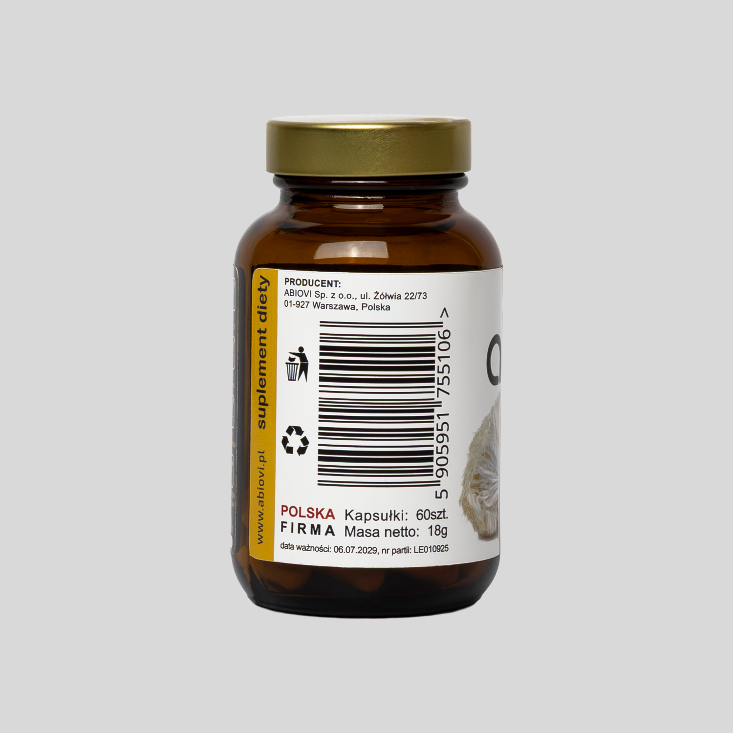 Wysoko skoncentrowany ekstrakt z soplówki jeżowatej (Lion’s Mane) zawierający aż 30% polisacharydów potwierdzony badaniami laboratoryjnymi. Wspiera funkcje poznawcze - pamięć, koncentrację i zdolność uczenia się oraz redukuje „mgłę mózgową”, wspierając klarowność myśli. Właściwości adaptogenne wzmacniają odporność układu nerwowego na stres, a dodatkowe wsparcie błony śluzowej żołądka poprawia komfort trawienny.