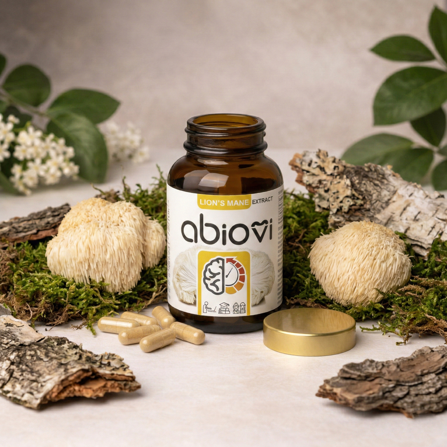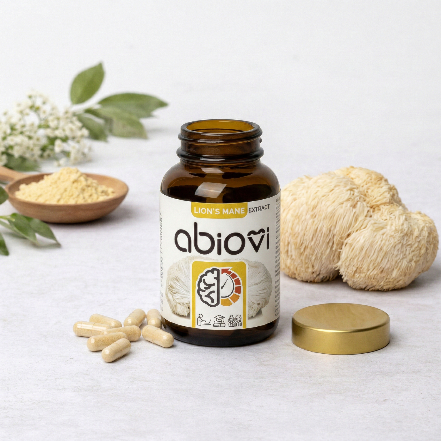 Lion’s Mane w produktach Abiovi pochodzi z kontrolowanych upraw, bez użycia pestycydów i szkodliwych substancji. Każda partia surowca podlega kontroli jakości, a kapsułki roślinne HPMC sprawiają, że produkt jest odpowiedni również dla osób na diecie wegańskiej.
